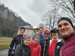 Zum Jahresbeginn stellten sich 7 Läufer:innen der Herausforderung von "Rund um Feldkirch". Bei leicht regnerischem Wetter führte uns der Rundkurs über den Margarethenkapf und den Ardetzenberg. Beim Levner-Weiher wartete Sabine mit einer wohltuenden Verpflegungsstation auf uns. Anschliessend ging es hoch Richtung Känzele. Aufgrund des rutschigen Bodens entschieden wir uns den Gipfel über die Forststrasse zu umrunden. Anschliessend ging es hoch zum Stadtschrofen. Nach etwas mehr als 2 Stunden trafen wir erschöpft beim Ausgangspunkt am Reichenfeld ein. Vielen Dank für die Organisation.