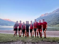 Hinter Quinten legten wir eine kurze Pause ein. Ein Teil der Gruppe nahm das traditionelle Bad im See. Diejenigen, die vor dem Dorf einen Weg höher gelaufen waren, kamen etwas später zum Treffpunkt und hörten schon von weitem den Trubel der Badenden.
